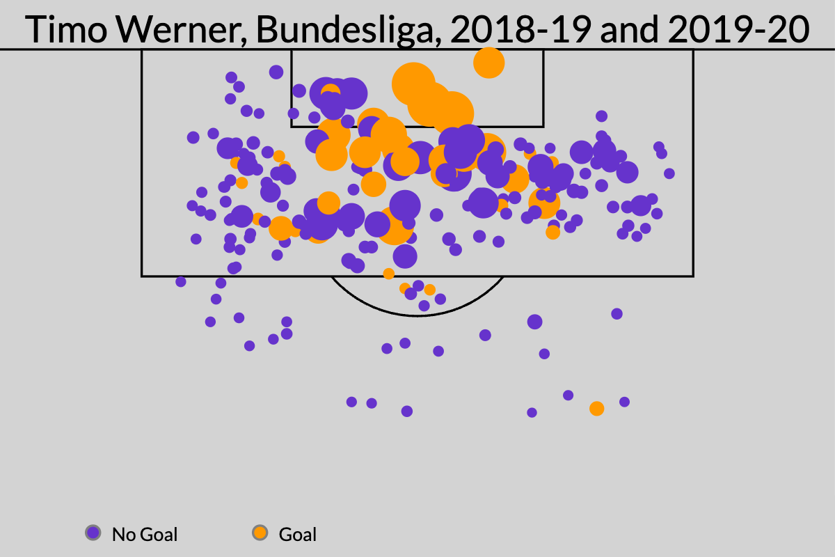 Before Werner became a meme, he was one of the best attackers in Europe -- because he got on the end of great chances and because he finished them. Over that two-year stretch, only Lewandowski, Mbappe, and Messi scored more non-penalty goals than the German forward.